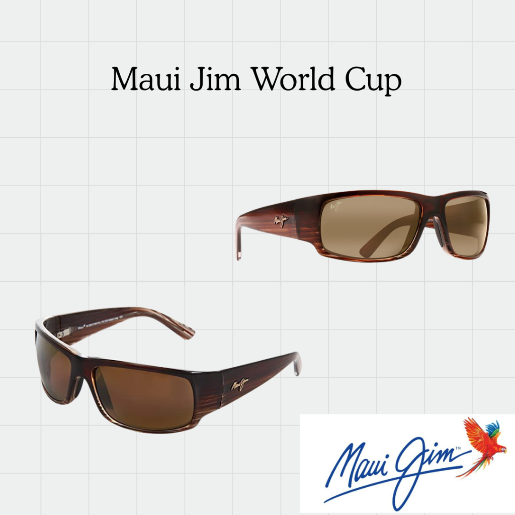 The Maui Jim World Cup features a massive, wrap-around frame made from High-Grade Injected Nylon. Maui Jim World Cup isn’t your average plastic. It’s lightweight, incredibly tough, and designed to sit snugly on your Face so no “leakage” of sunlight gets in from the sides. It’s the ultimate shield for your eyes.